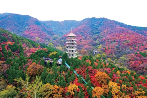 深秋時節(jié),濟南西部城區(qū)紅葉漫山